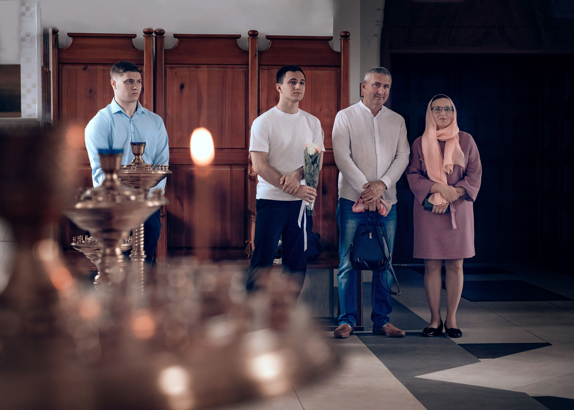 Екатерина, Алексей и Агния в храме Святителя Николая в Заяицком